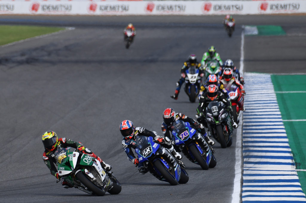After winning Race 1 on Saturday, Azlan again started Race 2 from pole position. A great start from the ONEXOX TKR SAG Team rider gave him a strong lead, but Azlan was initially unable to get away from the Yamaha contingent led by Broc Parkes and local hero Apiwat Wongthananon.
