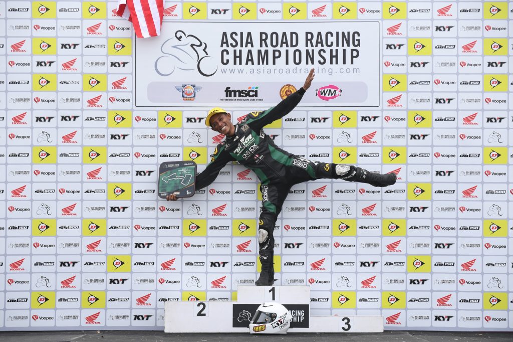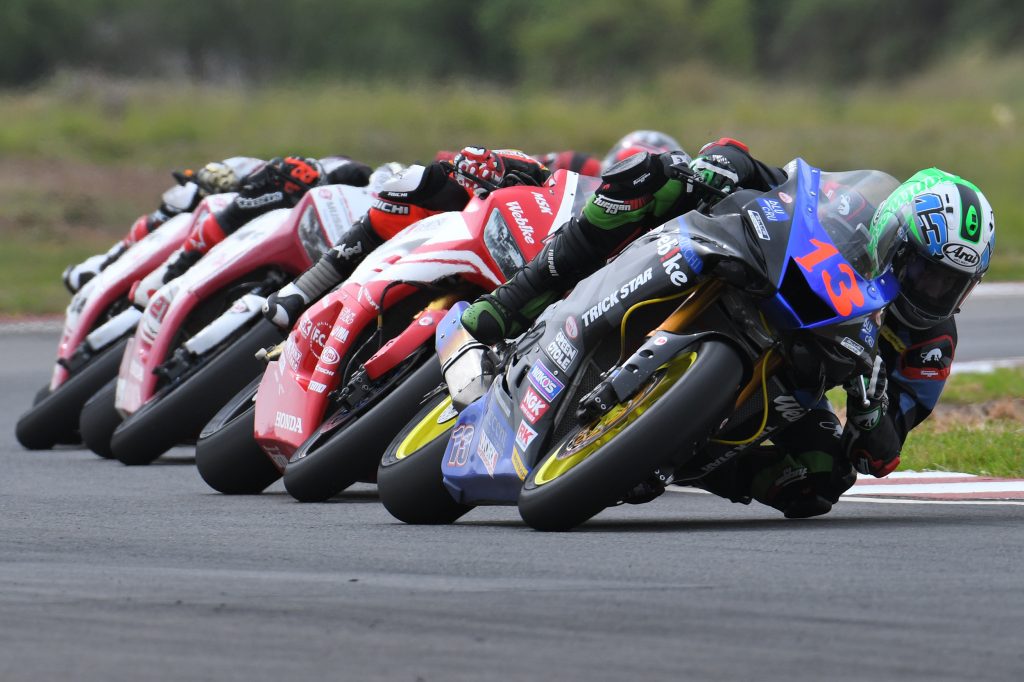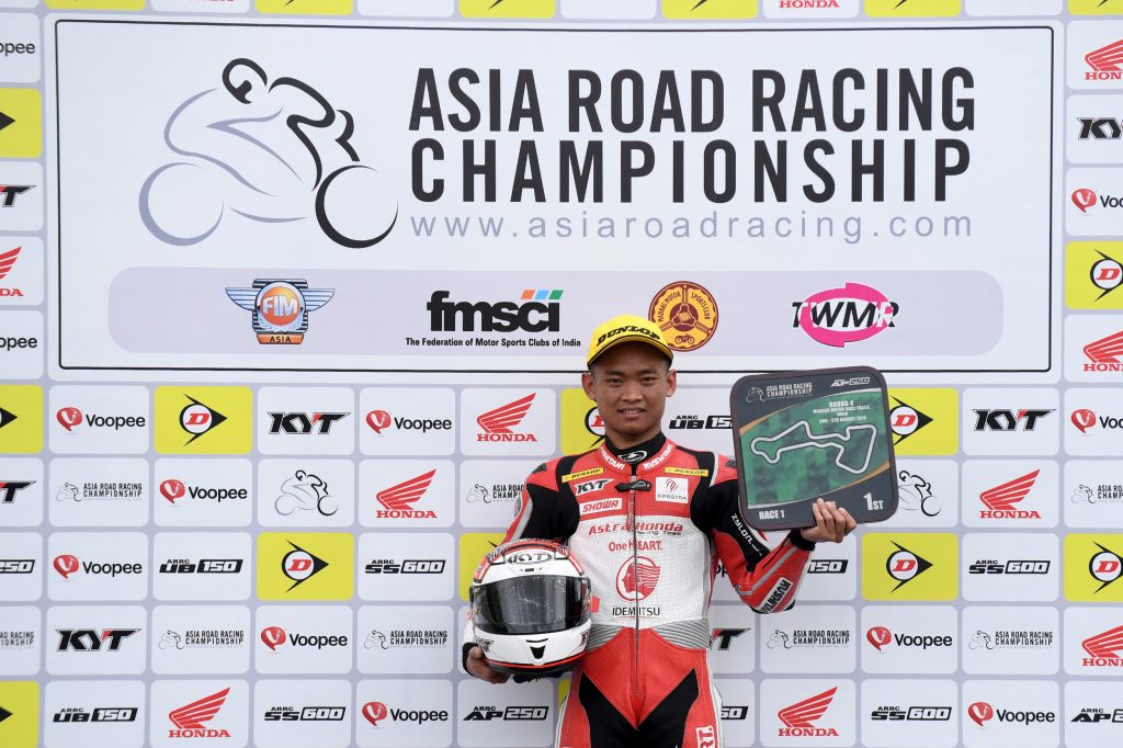 Team WeBike Ikazuchi Racing will be leaving the Madras Motor Race Track on a winning high after a successful weekend by their star rider, Anthony West. The undulating 3.74km circuit has been particularly kind to West who picked up his first double win of the season by taking Race 2 with a time of 27’10.157s. Race 2 revved off with West on pole position, and team mates Tomoyoshi Koyama and Zaqhwan Zaidi joining him on the front row. West reversed his race strategy for Race 2, opting to push ahead early in the race rather than sitting back and waiting for the second half of the race. Racing with a clear piece of track ahead of him, the Australian rider was able to carve out 7 seconds worth of daylight between him and the chasing group comprised of Tomoyoshi Koyama, Taiga Hada and Mohd Zaqhwan Zaidi. The three Honda riders were caught up with battling each other for P2. Their 16-lap scuffle ended with the two Japanese riders on the podium. Koyama finished second with 27’17.240s while Hada was third. Malaysian rider Mohd Zaqhwan Zaidi missed out on the podium and was forced to settle for fourth. Behind him, defending champion Azlan Shah Kamaruzaman made up for his crash in Race 1 by completing the second race in fifth place. Kasma Daniel Kasmayuddin was the most impressive rider of the day. The Hong Leong Yamaha Malaysia rider started the race from 17th on the grid and made up 10 places to finish 6th. However, the most heart breaking moment of the day was served up by Yuki Ito. In line for a potential podium finish, Ito high-sided at the last corner of the final lap. Even though the top honours were lost, Ito was hell bent on finishing his race. The Japanese Yamaha rider picked up his bike and pushed the broken machine to the finish line as the crowded grandstand cheered him on. The outcome from Round 4 has given West a huge lead on the championship standings. He is well on his way to becoming the first Australian champion of the ARRC with 136 points. Azlan Shah trails by 51 points.
