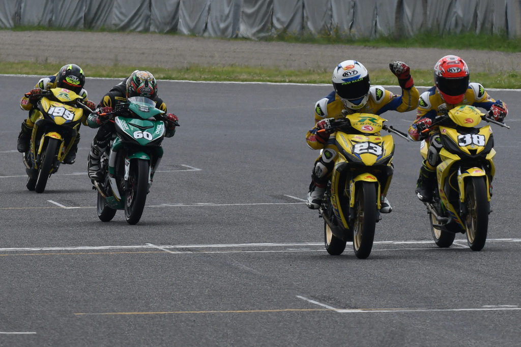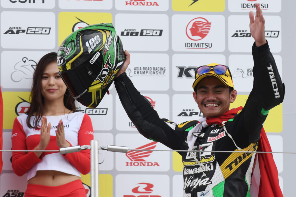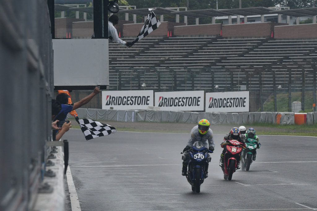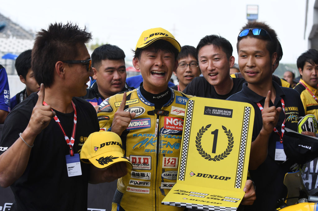 On an afternoon interrupted by torrential rain, Shinichi Nakatomi, no stranger to ARRC and especially to Suzuka, scored a brilliant win in race two on a wet track. Nakatomi had been unable to find the right set-up for the dry race one on Saturday, but revelled in the conditions that Suzuka served up on Sunday. From the start Zaqhwan got away well, but was quickly passed by Yamaha Thailand’s Ratthapong Wilairot, then Nakatomi, who shot through after starting from ninth on the grid, Broc Parkes and Yuki Ito. Azlan Shah got a poor start, and finished lap one in eighth. Apiwat Wongthananon, who had started from the outside of the front row, also fell back from the start. Ratthapong held the lead until lap three, when Nakatomi got through. Yuki Ito, riding with a strapped up broken ankle from a crash on Friday, displaced the Thai for third. At mid distance Broc was four bike lengths back in fourth, but gradually reeled in and passed Ratthapong. Meanwhile Nakatomi was passed briefly by Ito, but regained his place and stretched his lead by a few tenths a lap, displaying confidence in his bike and his tyres by sliding through some of the turns. With two laps left, Broc closed on his injured team-mate, who resisted until turn 15 on final time around, when the Australian got good drive out of the spoon curve and went past. Ito stayed close, but was unable to stop Broc from taking second, two seconds behind a jubilant Nakatomi. Ratthapong came through in fourth, five seconds further back and with a similar margin between himself and fifth-placed Zaqhwan. Azlan got past Apiwat and Yudhistira to finish sixth. Apiwat won a four way battle for eighth ahead of Kazuma Tsuda, Chaiwichit Nisakul and Bryan Staring. With 45 points from his weekend’s work, Broc Parkes extends his points total to 150, now 27 clear of Azlan Shah, who earned himself 26 points in Suzuka. Zaqhwan lies third on 115.