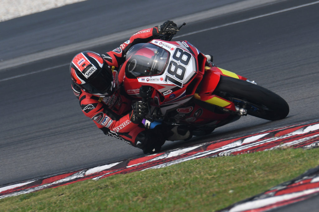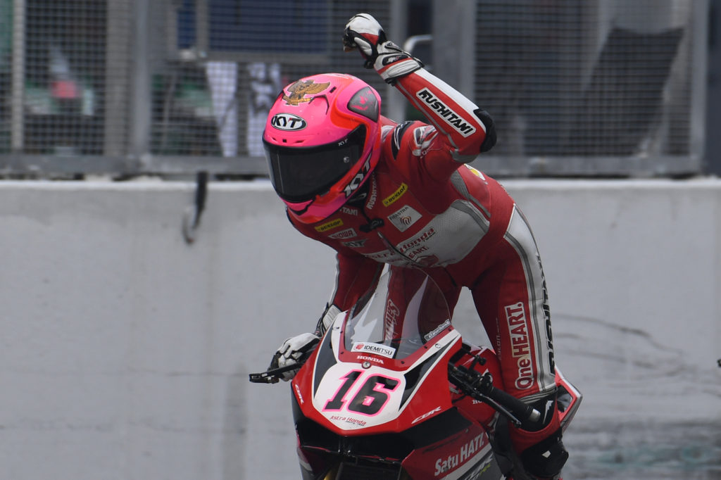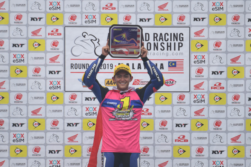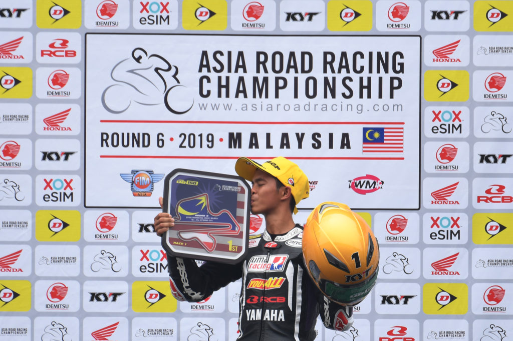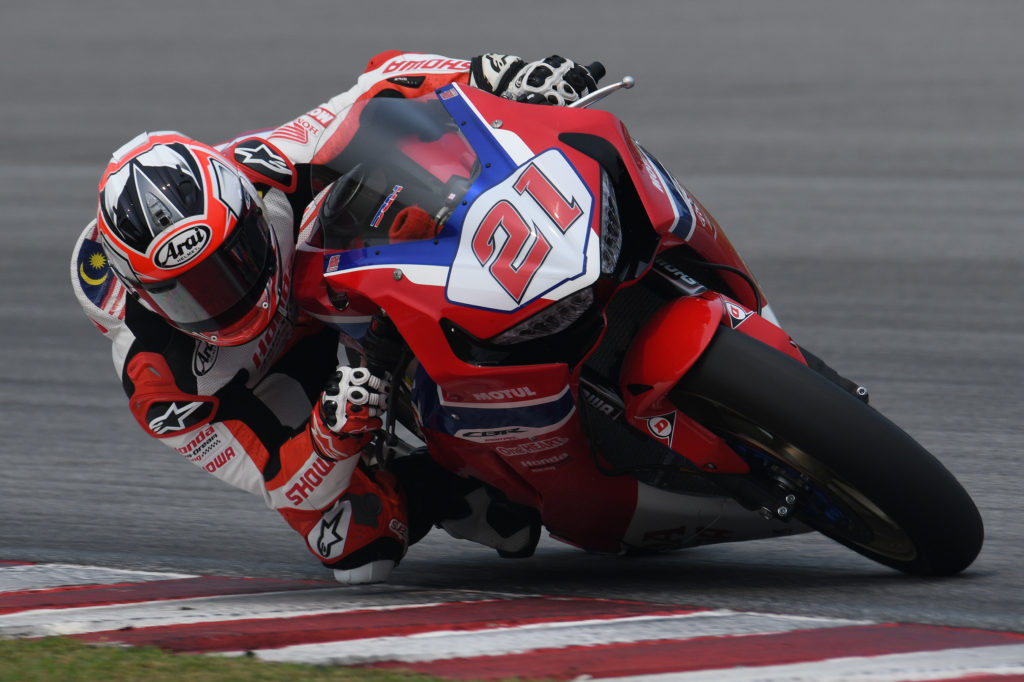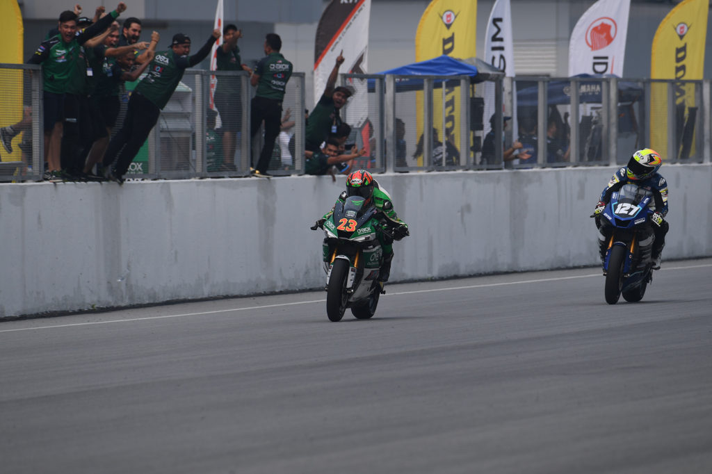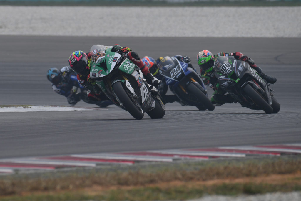 From the extreme heat at the Zhuhai International Circuit in August, to the extreme haze at the Sepang International Circuit in September, Malaysian rider Azlan Shah Kamaruzaman proved that he had what it takes to rise above the elements as he became the only rider form Round 6 to take home the double win. Azlan’s second race of the weekend got off to a conservative start when he paced in fourth on Lap 1 behind Thitipong Warokorn, Apiwat Wongthananon and championship leader Broc Parkes. The Malaysian rider was jolted out of his complacency when wildcard Federico Sandi made an overtaking attempt on Azlan on Lap 5. Fighting spirit triggered, Azlan went on a rampage on Lap 6 when he overtook Federico, Broc and Apiwat all in one lap. On Lap 7, Azlan snatched the reins from Thitipong to take full control of the race pace. Azlan’s familiarity with the Sepang International Circuit became a big advantage as he set the fastest lap of the race, 2’06.626s in the final lap. Azlan added a fifth win to his name with 23’29.755s. 1.255 seconds behind, Thitipong managed P2 with 23’31.010s and Apiwat Wongthananon finished third for the fourth time this year with 23’31.465s. The ASB1000 Race 2 podium saw an interesting mix of manufacturers with Azlan on the BMW, Thitipong with Kawasaki and Apiwat Wongthananon representing Yamaha.