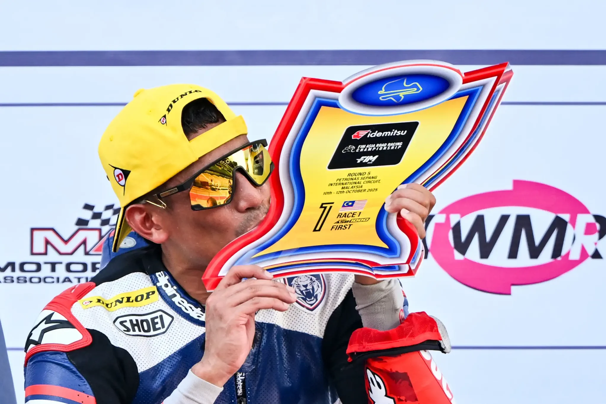 Round 5 of the IDEMITSU FIM Asia Road Racing Championship produced a dramatic Race 2 in the ASB1000 class at the Sepang International Circuit, as Azroy Hakeem Anuar of IDEMITSU HONDA RACING MALAYSIA took a sensational victory after a chaotic final lap. Hafizh Syahrin Abdullah of JDT RACING TEAM got off to a solid start but was immediately challenged by Azroy at the first turn. The early laps saw Hafizh and Azroy trading positions at the front, with Muhammad Zaqhwan Zaidi of IDEMITSU HONDA RACING MALAYSIA, Keito Abe of SDG HARC-PRO. HONDA PHILIPPINES, and Nakarin Atiratphuvapat of HONDA RACING THAILAND battling for top positions. By Lap 3, Zaqhwan overtook Hafizh to take the lead, setting the fastest lap at 2’06.362s. Azroy began his climb, overtaking Keito and gradually closing the gap to the front runners with successive fastest laps of 2’06.166s, 2’06.028s, and 2’06.003s between laps 6 and 10. Lap 11 saw Hafizh regain the lead, setting the stage for a dramatic finale. On the final lap, a collision occurred when Zaqhwan attempted to overtake Hafizh, resulting in both riders crashing out. This opened the door for Azroy, who seized the moment and crossed the finish line first at 25’26.719s. Nakarin took second at 25’29.682s, while Andi Farid Izdihar of ASTRA HONDA RACING TEAM completed the podium at 25’29.750s. The second-place finish for Nakarin secured him the championship lead, giving him an advantage heading into the final round at his home circuit in Chang International Circuit, Buriram, Thailand. Azroy said, “Alhamdulillah, after a very tough race yesterday, today I managed to get back to number one after a long time. This was possible thanks to my team, although there were also some crashes involving the riders ahead of me, which are part of racing. At the start, I tried to fight for first position, but my rear tyre had no grip, so I dropped back to fourth. From there, I focused on building momentum and regaining confidence lap by lap. After passing Nakarin, I felt I was closing in, but I pushed too hard in the middle of the lap. That’s why, on the last lap, I was a bit too far to challenge further. I also noticed the gap behind was about two seconds, so finishing third was safer than risking a crash. I want to thank everyone, especially the fans who came to support us in Sepang. Now, let’s see how it goes in the final round in Buriram.” TOP 5 FASTEST – RACE 2