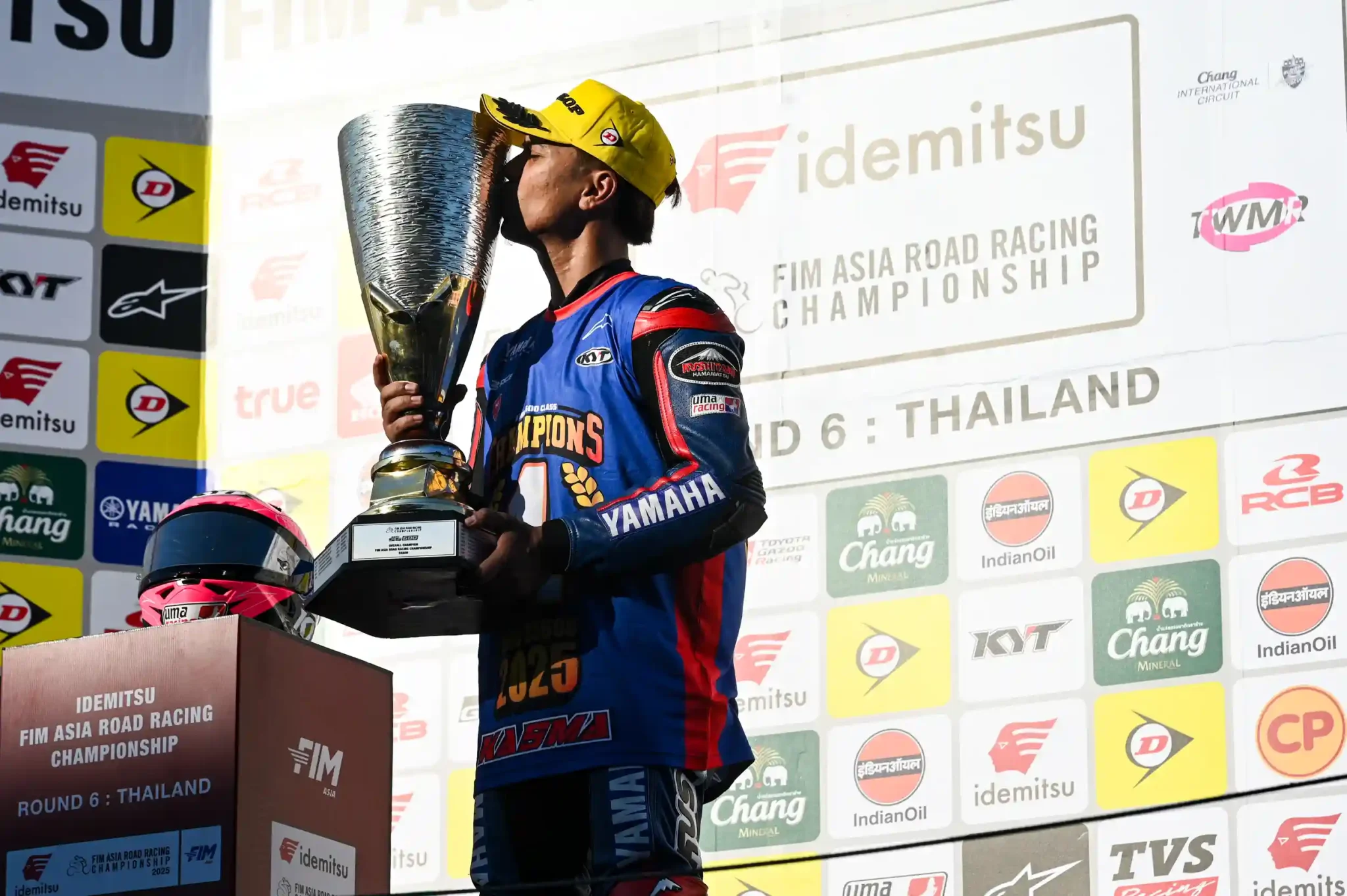 The final race of the IDEMITSU FIM Asia Road Racing Championship 2025 at the Chang International Circuit, Buriram, Thailand delivered one of the most dramatic and unpredictable SS600 showdowns. Race 2 concluded with Thanat Laoongplio of HONDA RACING THAILAND won home race, and Kasma Daniel Kasmayudin of HONG LEONG YAMAHA RACING crowned as 2025 SS600 Overall Champion. As the race started, Anupab Sarmoon of YAMAHA THAILAND RACING TEAM launched strongly from the grid. However, his early advantage was short-lived as Kasma Daniel Kasmayudin of HONG LEONG YAMAHA RACING and Thanat Laoongplio of HONDA RACING THAILAND swept past to take control. By the second lap, the running order shifted again when Apiwath Wongthananon of YAMAHA TNP slotted into the lead, followed closely by Thanat and Kasma. Behind them, Mohammad Adenanta Putra of ASTRA HONDA RACING TEAM carved his way through the pack, overtaking both Kasma and Anupab to climb into third place. The intensity increased as the riders entered the middle stages. Adenanta continued his charge, challenging Thanat and closing in on Apiwath. The two leaders exchanged positions repeatedly, with Thanat momentarily seizing the lead before Apiwath retaliated. Meanwhile, Aldi Satya Mahendra of YAMAHA RACING INDONESIA produced a strong surge of his own, overtaking Anupab and gradually inserting himself into podium contention. The race reached a boiling point around lap 6, with Aldi moving up to second place while the front group compressed into a tight, unpredictable six-rider battle. By lap seven, Adenanta briefly took control of the race before Aldi countered to reclaim the lead. The following laps were defined by fierce but clean racing, with Aldi, Kasma, and Anupab locked in a high-speed contest for first place, while Thanat, Adenanta, and Apiwath traded blows for fourth. With the second group rejoining the leaders by lap 10, the fight for the win became a six-way sprint. Thanat produced the fastest lap of the race at 1’39.582s, re-entering podium contention just as the field approached the final lap. What happened next dramatically altered the course of the championship. In the last-lap chaos, Anupab made a decisive move to overtake Aldi and capture the lead. Adenanta then executed a brilliant overtake of his own, momentarily placing himself in position to win both the race and potentially the championship. However, disaster struck when he crashed out, ending his podium hopes and his season-long title pursuit in a single moment. The opening created by the incident allowed Thanat Laoongplio to sweep through and claim a sensational victory on home soil with a winning time of 20’07.296s. Aldi crossed the line in second at 20’07.458s, followed by Anupab in third at 20’07.647s. Despite missing out on the podium, Kasma’s strategic race management and consistent performance watched him secured the SS600 Overall Championship title for season 2025. He ended the season tied with Anupab on 167 points, but his overall results across the year placed him at the top of the standings. Adenanta concluded his campaign in third with 152 points after his unfortunate final-lap exit. Thanat said, “I have waited for this moment for so long! This is my first victory of the season, and winning on my home soil makes it even more meaningful and special. This one is for everyone who never stopped believing in me and has always supported me.” Kasma said, “This is truly a gift from Allah. I still can’t believe it. During the race, I was really nervous and focused on staying safe, just trying to stick with the front group without crashing and hoping for the best. But as I said, this is a blessing from Allah. Even though I didn’t finish on the podium today, I still secured the title. Alhamdulillah, Allah’s grace is boundless.” TOP 5 FASTEST – RACE 2 1. THANAT LAOONGPLIO – HONDA RACING THAILAND (20’07.296s) 2. ALDI SATYA MAHENDRA – YAMAHA RACING INDONESIA (20’07.458s) 3. ANUPAB SARMOON – YAMAHA THAILAND RACING TEAM (20’07.647s) 4. KASMA DANIEL KASMAYUDIN – HONG LEONG YAMAHA RACING (20’08.188s) 5. APIWATH WONGTHANANON – YAMAHA TNP (20’08.226s) TOP 5 – OVERALL RIDER STANDINGS 1. KASMA DANIEL KASMAYUDIN – HONG LEONG YAMAHA RACING (167 points) 2. ANUPAB SARMOON – YAMAHA THAILAND RACING TEAM (167 points) 3. MOHAMMAD ADENANTA PUTRA – ASTRA HONDA RACING TEAM (152 points) 4. WAHYU NUGROHO – YAMAHA RACING INDONESIA (121 points) 5. THANAT LAOONGPLIO – HONDA RACING THAILAND (120 points) TOP 5 – OVERALL TEAM STANDINGS 1. HONG LEONG YAMAHA RACING (267 points) 2. IDEMITSU HONDA RACING MALAYSIA (215 points) 3. HONDA RACING THAILAND (195 points) 4. YAMAHA RACING INDONESIA (192 points) 5. ASTRA HONDA RACING TEAM (190 points)