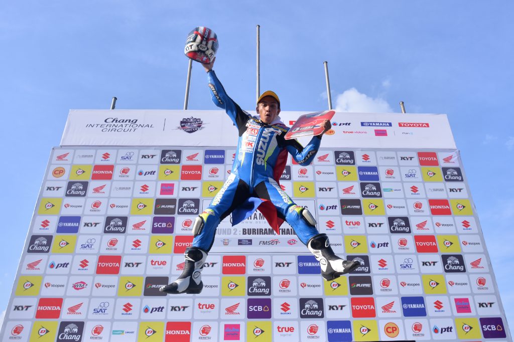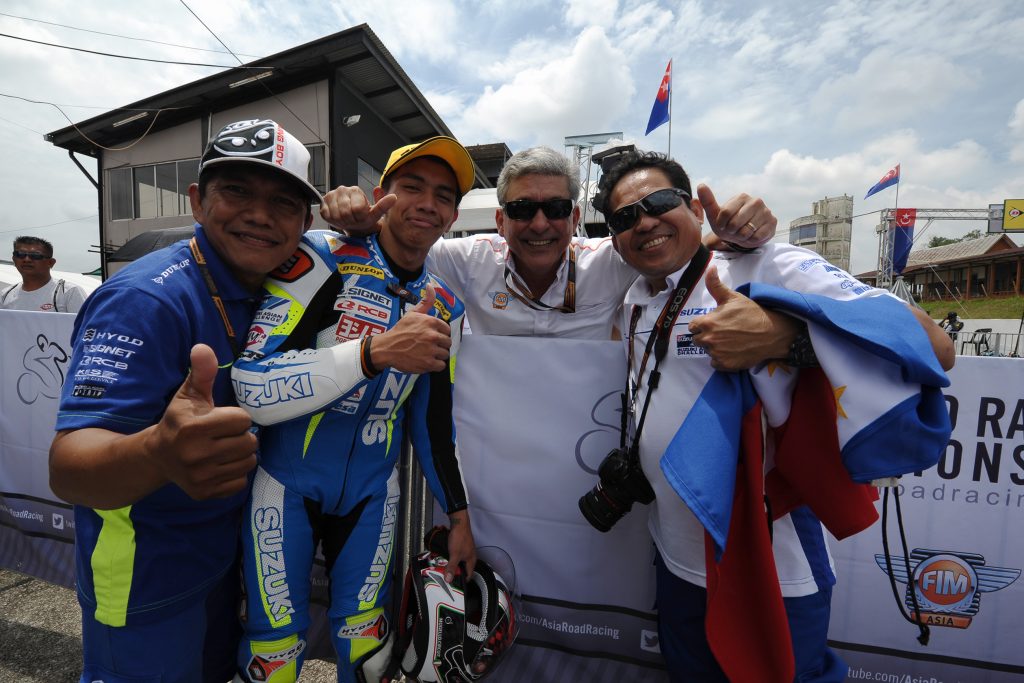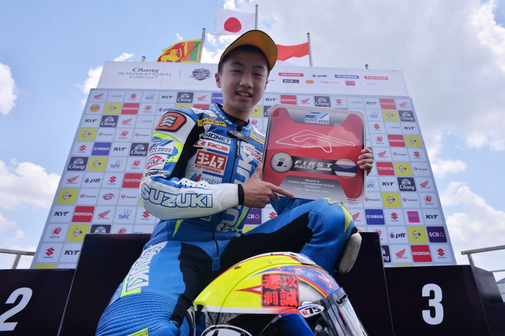 SUZUKI ASIAN CHALLENGE (SAC) finished its 2nd round of the 2017 season, which was held at Chang International Circuit locaited in Buriram, Thailand. Race 2 progressed in similar fashion as Race 1 which was held the previous day. Almost all riders raced in a tight pack until the end of the race. Local favorites, #18 Patis Chooprathet and #78 Punchana Kulrojchalalai took the lead at first, but with almost all riders in one pack, the lead changed at almost every turn. The excitement continued until the final corner of the final lap. 11 riders jumped into the final corner to take the win, but with one faller taking out an another rider with him, 6 more riders fell. #17 Tetsuya Fujita (Japan) made a manueuver that made him clear of the multiple crash, and won the Race. #46 Aaron Alexander Gunawardena (Sri Lanka) came in 2nd, making Gunawardena the first Sri Lankan rider to be on the ARRC podium. Finishing in 3rd was #11 Ahmad Saugi Muchtar of Indonesia. Round 3 of the SUZUKI ASIAN CHALLENGE will be held in conjunction the 2017 FIM Asia Road Racing Championship, at Suzuka Circuit in Mie, Japan on 2nd – 4th June, 2017. 2017 SUZUKI ASIAN CHALLENGE Round 2 Race 2 Results 1. #17 Tetsuya Fujita (Japan) 2. #46 Aaron Alexander Gunawardena (Sri Lanka) 3. #11 Ahmad Saugi Muchtar (Indonesia) 4. #76 Chepy Armansyah (Indonesia) 5. #16 April King H. Mascardo (Philippines) 6. #18 Patis Chooprathet (Thailand) 7. #27 Nur Al Fath Sam Ahmad (Indonesia) 8. #96 Bikram Thapa (Nepal) 9. #78 Punchana Kulrojchalalai (Thailand) 10. #32 Prahbu Arunagiri (India) 11. #33 K.Y. Ahamed (India) 12. #29 Mario Borbon U. Jr. (Philippines) ————————————————————————- DNF #22 Eane Jaye S. Sobretodo (Philippines) DNF #43 Edward Faulkhead (Australia)was #11 Ahmad Saugi Muchtar (Indonesia). QUOTES “I concentrated on being in the top group throughout the race. The race went as I planned, but I didn’t expect myself to be on the tail of the group on the final lap. However, the riders in front of me fell on the final corner, and I saw an opening, so I took it and was able to win the race. The next race at Suzuka would be a race in my home country, so I hope I can show the local race fans a good race.” #17 Tetsuya Fujita | Race 2 Winner “It was an exciting race again today. Aaron became the first Sri Lankan rider to be on the ARRC podium, so I am happy about that. Tetsu has been improving each session. He had a 2nd place finish in Round 1, and now have won a race in Round 2, so he’s on a roll, and look forward to see what he can do at Suzuka. I want to thank Patis for accepting my invitation to ride with the SAC boys. It didn’t quite go as planned for him at the race, but he was really fast in every session, and I am sure that his presence made the SAC riders improve in many ways. The next round is at Suzuka, which is a very technical track. It is also located in my home country, and wish all of you for your continuous support.” Yukio Kagayama | General Manager “The riders showed us an exciting battle to the very end. The characteristics of the track made it easy for us to predict this kind of race, but I am sorry to see the multiple crash on final lap, caused by some unreasonable riders. I am just relieved that no one was seriously injured. The youngest 13 year olds finished in 1-2, so I think it describes well what are development program is about.” Shunji Yatsushiro | Rider Coach
